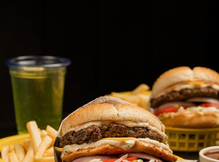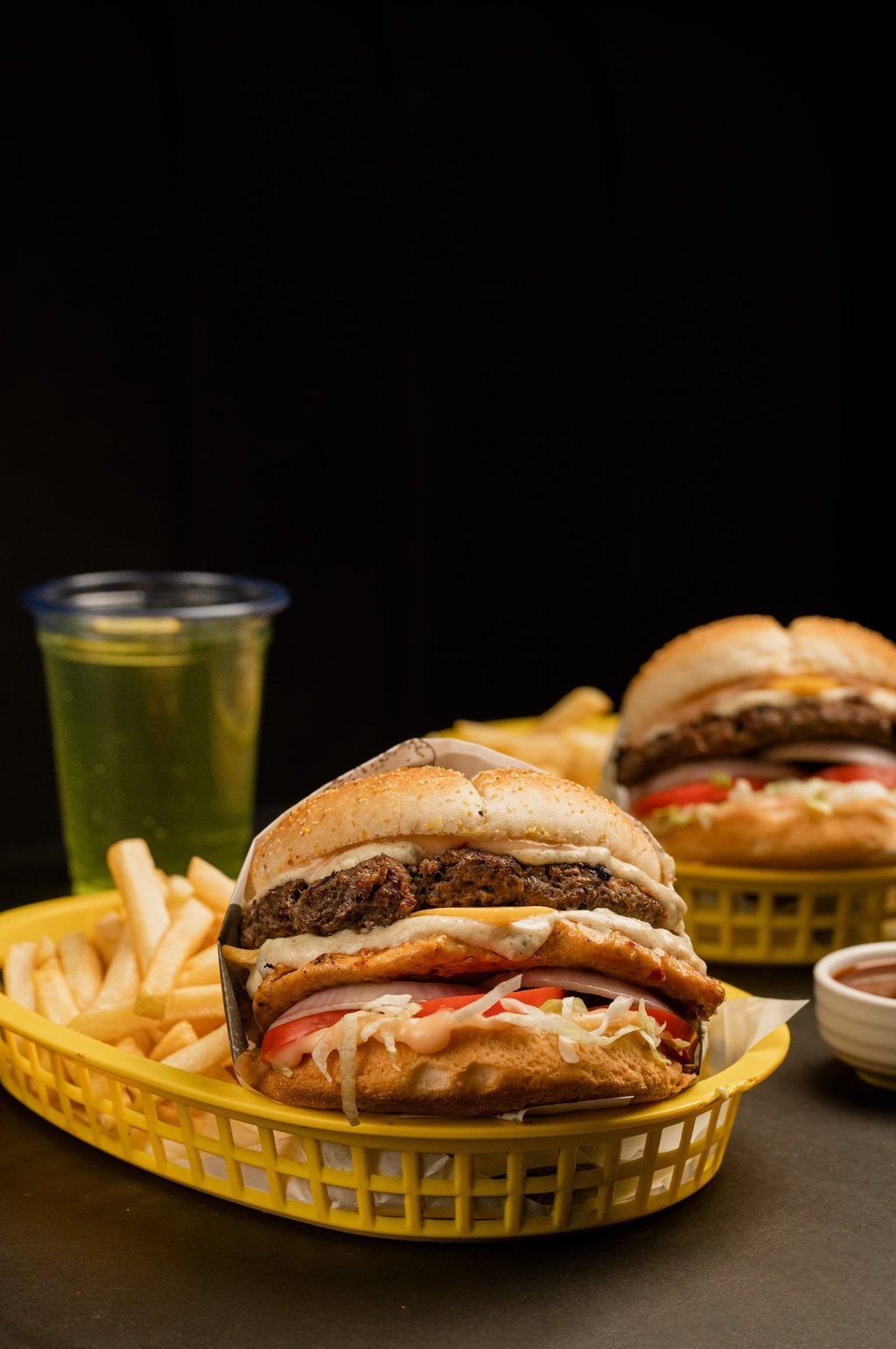 The ultimate duo burger, named the 10250, is a mouthwatering delight that combines the best of both worlds! This extraordinary creation features a juicy beef patty cooked to perfection, layered with a tender, savory chicken patty, offering a delightful contrast in flavors and textures.